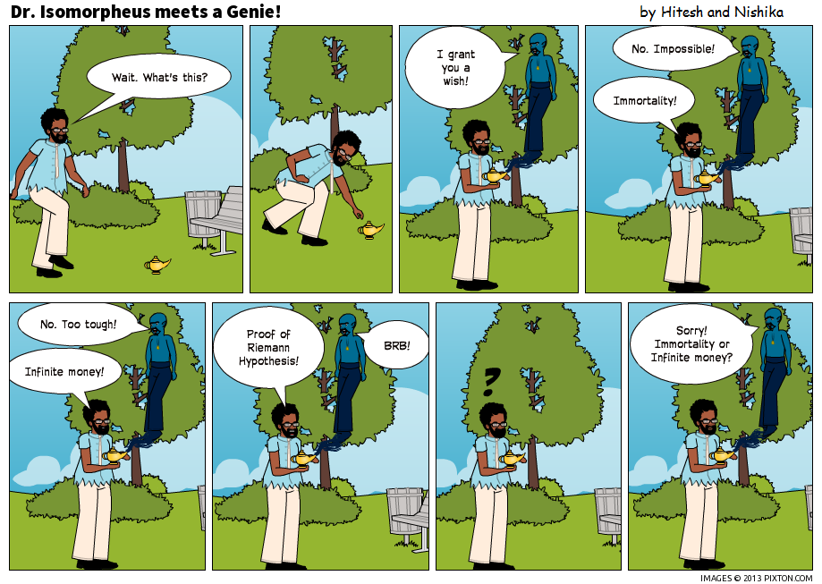 Posted on December 16, 2013, in Comic and tagged Dr. Isomorpheus, Fiction, Infinite Money, Infinity, RiemannHypothesis. Bookmark the permalink. Leave a comment.