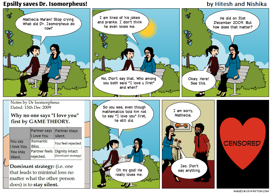 Tags: Dr. Isomorpheus, Epsilly, game theory, Love, Mathecia, Mathematics