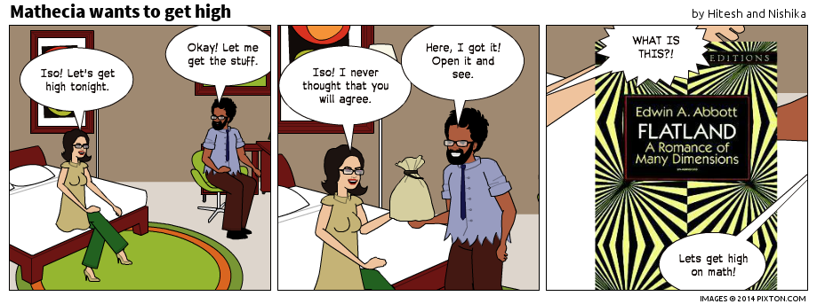 Posted on August 4, 2014, in Comic and tagged Alcohol, Dirty Picture, Dr. Isomorpheus, Flatland, Mathecia, Mathematics. Bookmark the permalink. Leave a comment.